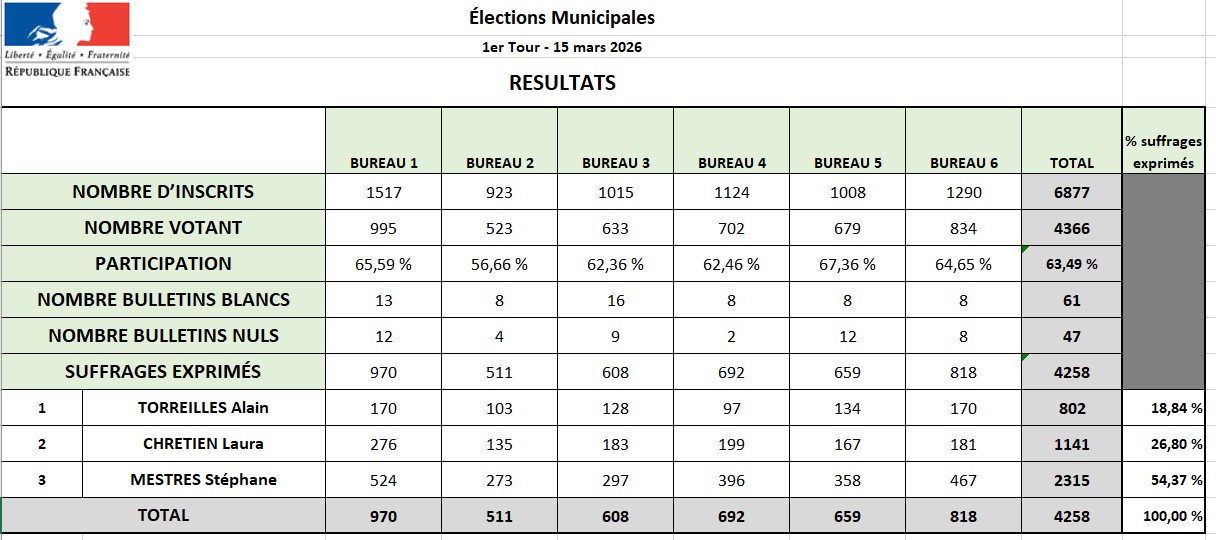 Résultats des élections municipales du 15 mars 2026