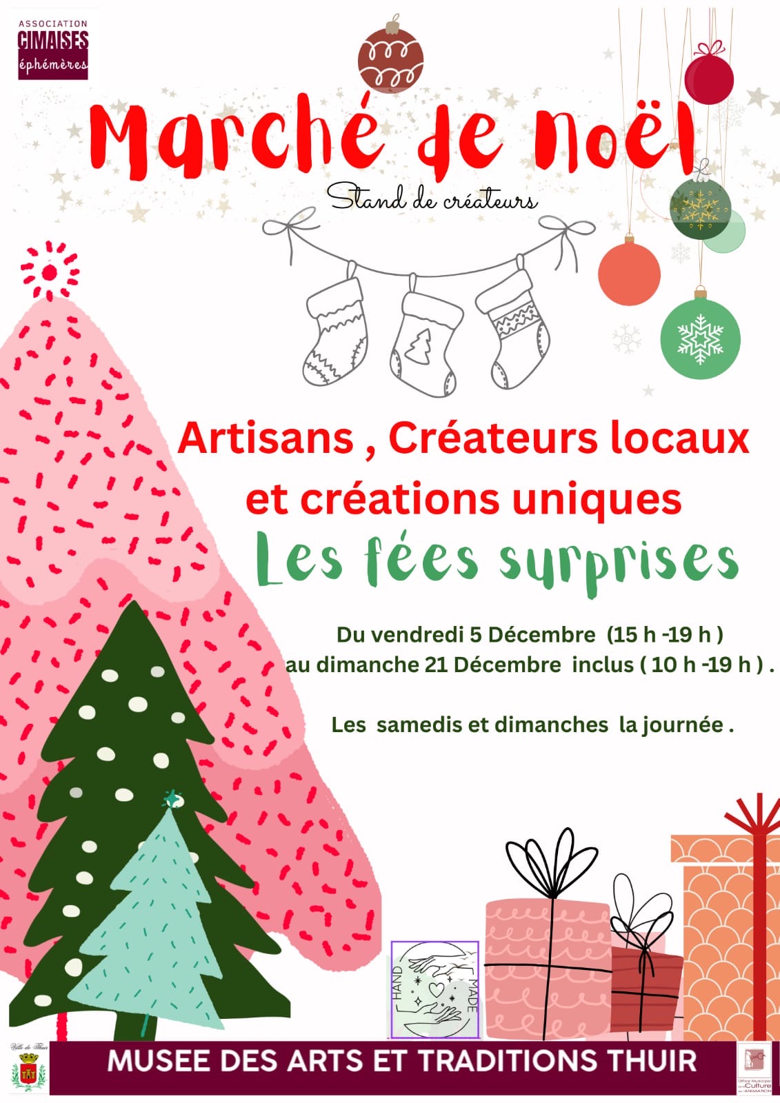 Marché de Noël, par les Cimaises éphémères + Ajouter à mon Agenda Google Date 5 - 21 décembre 2025 Heure 15:00 - 19:00 Lieu Musée des Arts et Traditions Populaires Place de la République - 66300 THUIR Catégorie Les associations culturelles vous proposent Organisateur Cimaises éphémères Partagez cet événement RechercherRechercherRecent PostsNADAL DES OURS – Découvrez le programme des festivités… Conseil municipal 3 décembre Commission de contrôle des listes électorales Médiathèque – Le programme pour Novembre et Décembre ALERTE METEO VENT VIOLENT Recent CommentsAucun commentaire à afficher.