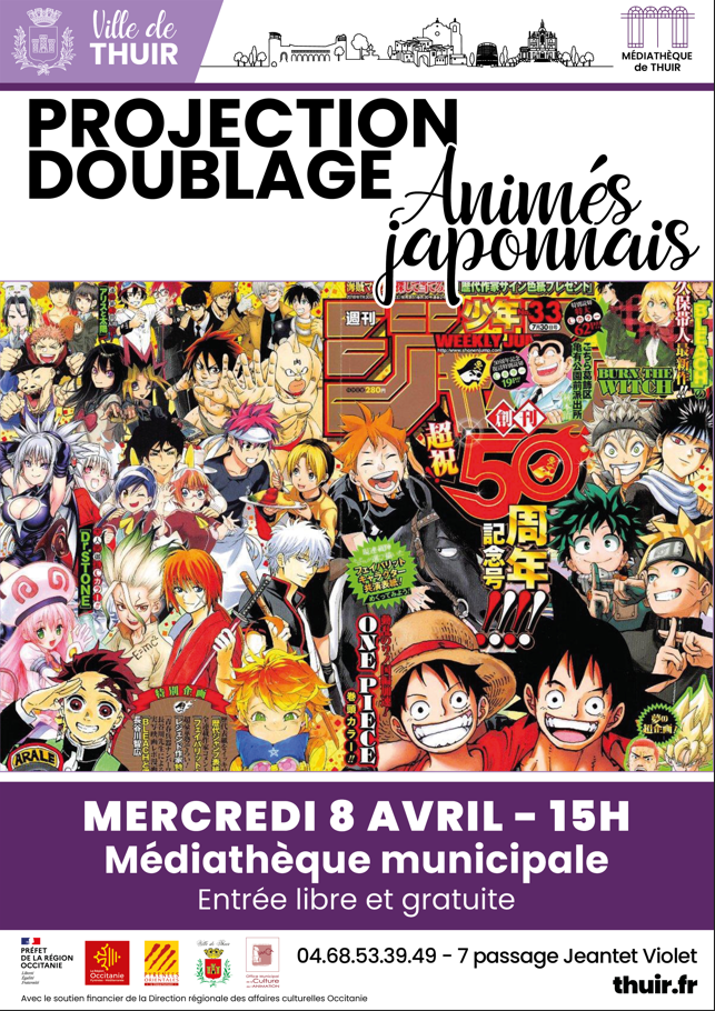 Projection Doublage Animés Japonnais + Ajouter à mon Agenda Google Date 8 avril 2026 Heure 15:00 Lieu Médiathèque Passage Simone Jeantet-Violet Organisateur Médiathèque Téléphone 04 68 53 39 49 Email mediatheque.municipale@thuir.fr Partagez cet événement RechercherRechercherRecent PostsConseil municipal 8 avril Médiathèque – Le programme d’Avril Avis de publicité aux associations – Installation du conseil d’administration du Centre Communal d’Action Sociale Conseil municipal 20 mars Médiathèque – Le programme de Mars Recent CommentsAucun commentaire à afficher.