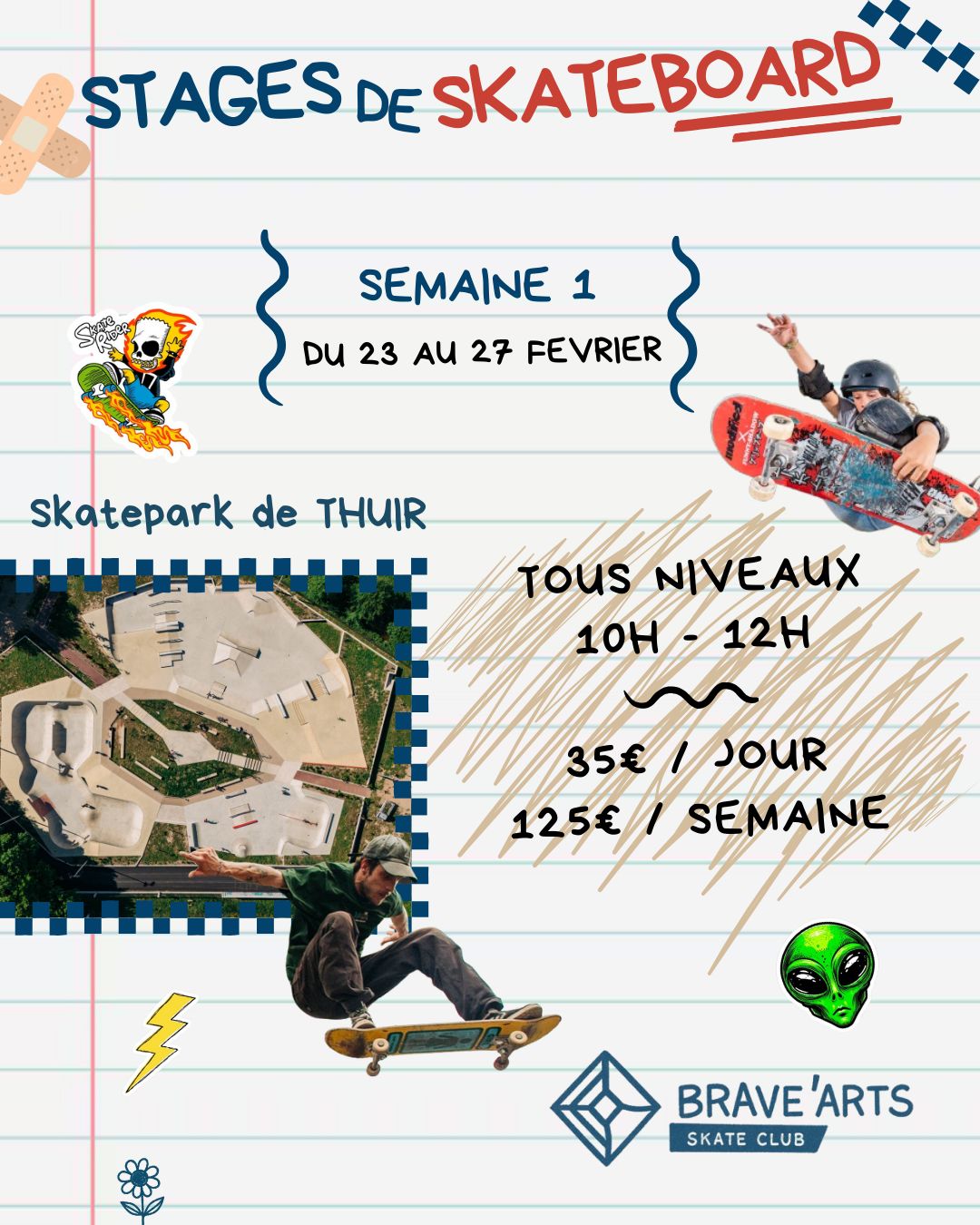 Stage de SKATEBOARD Inscriptions sur helloasso.com 07 68 53 03 96 contact@bravearts.fr + Ajouter à mon Agenda Google Date 23 - 27 février 2026 Heure 10:00 - 12:00 Catégorie Divers Sport Organisateur BRAVE'ARTS / Skate Club Téléphone 07 68 53 03 96 Email contact@bravearts.fr Site Web bravearts.fr Partagez cet événement RechercherRechercherRecent PostsTEMPÊTE NILS – Fin de l’alerte rouge – Vigilance Orange active TEMPÊTE NILS – Les équipes municipales pleinement mobilisées Vigilance ROUGE – TEMPETE Vigilance rouge – Vent violent Vigilance rouge – Vent violent Recent CommentsAucun commentaire à afficher.