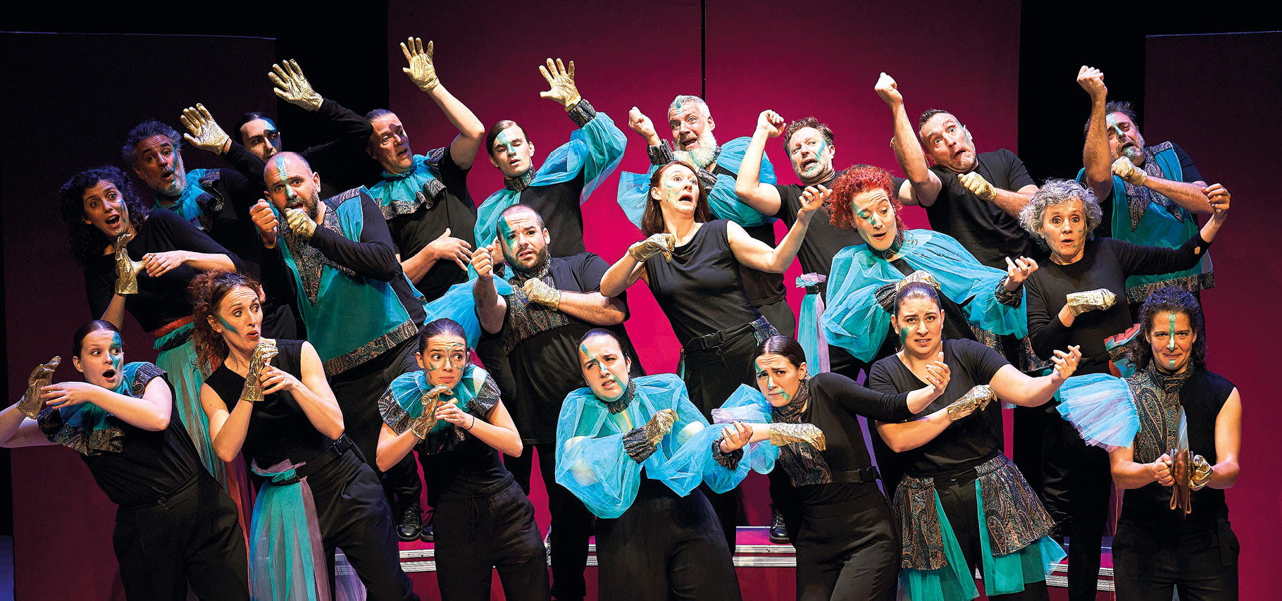 Cor de Teatre n’est pas strictement un groupe vocal ou une compagnie de théâtre, mais les deux à la fois. Un chœur qui rompt avec la distribution caractéristique de ces formations sur scène pour incorporer le mouvement, l’action et les ressources typiques du domaine théâtral.